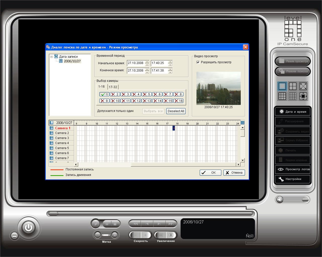 Нажатие кнопки воспроизведения сразу же приводит к запуску второй программы, которая позволяет воспроизводить видео. При этом для просмотра записанного видео придется указать точную дату и время записи.
