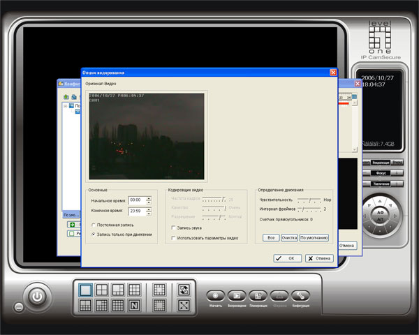 Также данная программа позволяет задать достаточно точные значения расписания записи и позволяет осуществлять запись только при срабатывании "Motion Detection"