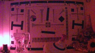В связи с этим мы провели измерения реальной разрешающей способности рассматриваемой камеры. Для этого пришлось серьёзно потрудиться над креплением камеры, ведь купольный формфактор не предполагает установку на штатив. После того, как камеру удалось жёстко закрепить напротив тестовой таблицы, потребовалось перенастроить фокусное расстояние (здесь возможность изменения фокусного расстояния оказалась безмерно полезной). Но вот и результат: