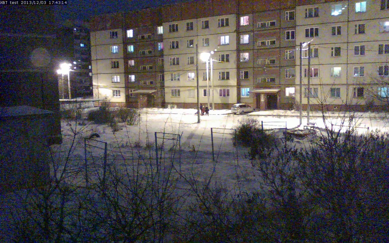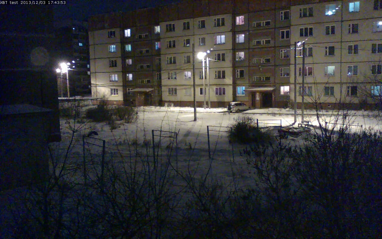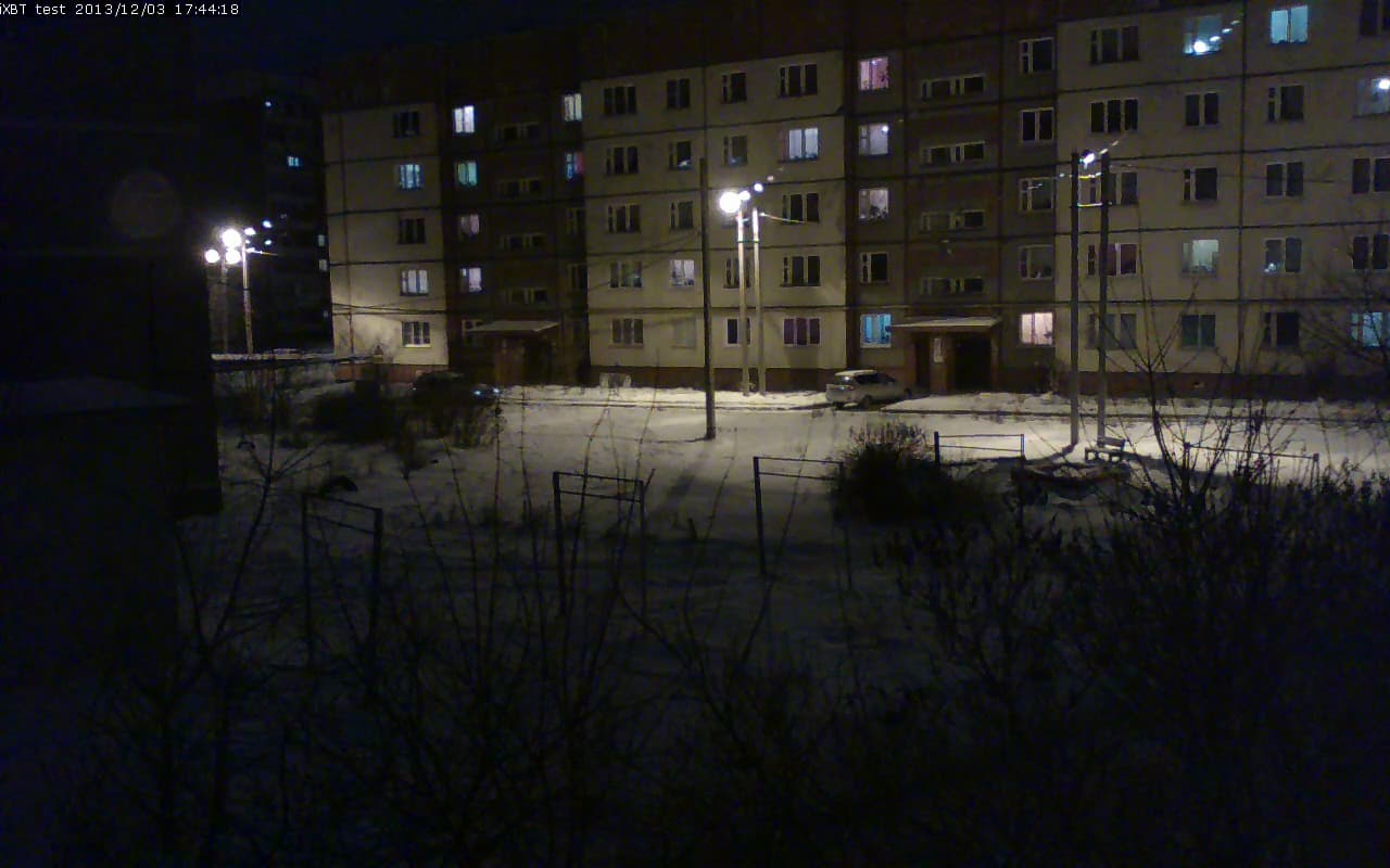 Помнится, в настройках рассматриваемого аппарата нам встретились такие пункты, как усиление и шумоподавление. Следует рассмотреть данный вопрос более глубоко, ведь усиление — важнейший инструмент, который позволит вести наблюдение за сценой со скудным освещением. Например, ночной двор (это может быть и помещение, но за неимением такого помещения мы будем использовать доступный двор). Усиление, имеющее четыре ступени, работает довольно эффективно, «вытаскивая» из полной темноты скрытые в ней объекты.