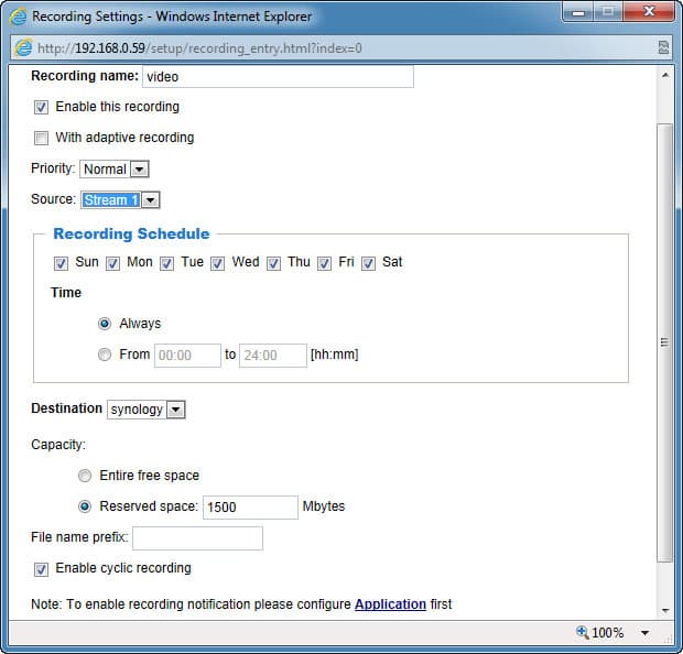 Следующий логичный шаг в предварительной настройке камеры — создание шаблона записи. Данный шаблон будет использоваться камерой в случаях, когда потребуется реакция на то или иное событие. Среди регулируемых параметров записи имеются такие, как приоритет, выбор записываемого потока, дни недели и время суток, в которые может производиться запись, «пункт назначения» данной записи (выбранный ранее сервер).