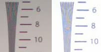 В обоих случаях линии на таблице получились нерезкими, размытыми — явный признак отсутствия фокуса. Однако подрегулировать его никак нельзя — объектив имеет фиксированный фокус. Тем не менее, разрешающую способность определить вполне можно, невзирая на недостаточную резкость картинки.