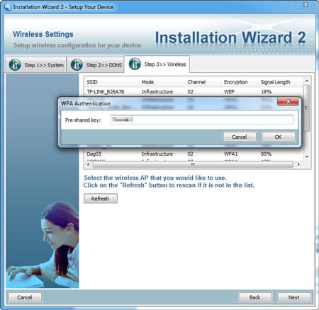 В процессе пошаговой настройки имеется возможность ввести параметры DDNS, согласиться либо отвергнуть предложение о включении дополнительного 3GPP потока для просмотра видео на мобильных устройствах, выбрать нужную Wi-Fi сеть и ввести для нее пароль.