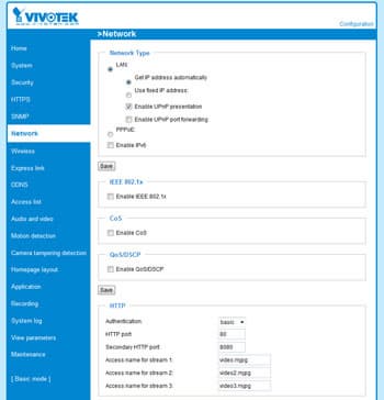 В сетевых настройках имеется возможность изменить параметры присвоения IP-адреса, задать уникальное имя и включить-отключить Multicast для каждого из трех видеопотоков, определить порты для некоторых типов соединений.