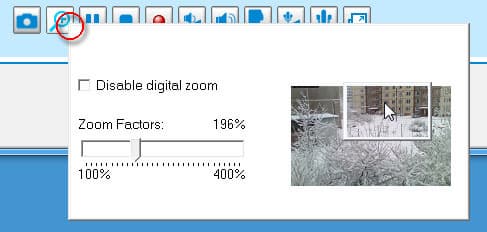 Под видеоокном расположен ряд управляющих кнопок, тут имеется довольно много функций. Среди них такие, как создание стоп-кадра (при этом открывается новое окно с кадром — сохраняй куда хочешь), старт/стоп трансляции или записи (видео при этом по умолчанию записывается в папку Record в системном разделе ПК), изменение громкости встроенного в камеру динамика и микрофона. Нажатие кнопки Talk включает режим передачи аудио на встроенный динамик: теперь с помощью микрофона, подключенного к ПК, можно передать голосовое сообщение через динамик камеры. Который, кстати, довольно громкий. Задержка трансляции звука составляет 2-3 секунды.