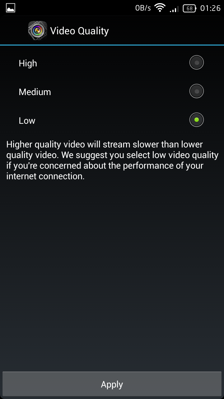 Картинка с подключенных таким образом камер отобразится в небольшом окошке. Здесь же станут доступны инструменты для конфигурации качества изображения, активации звука с микрофона, встроенного в камеру, и для переключения в полноэкранный режим просмотра.