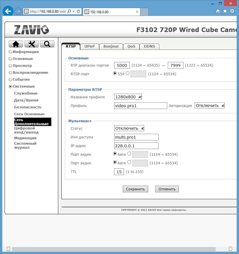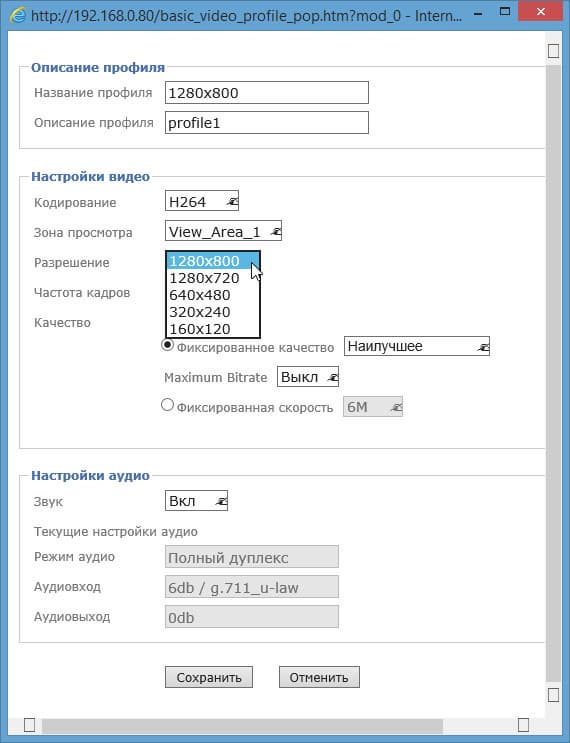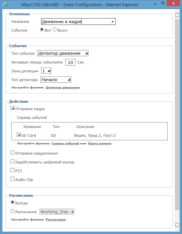 Список параметров, которые позволяется изменить, невелик. Зато охватывает все настройки, необходимые для начала работы камеры, как в одиночку, так и в составе комплекса видеонаблюдения.