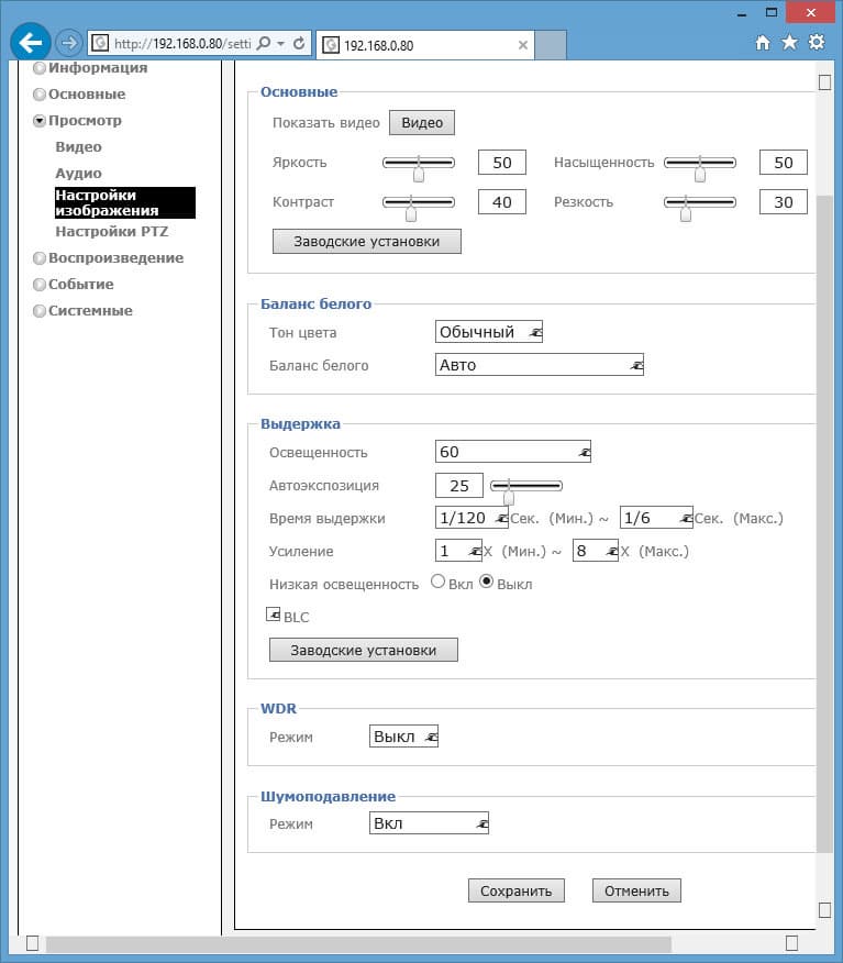 Вернемся к настройкам камеры. Они, как и в подавляющем большинстве аналогичных устройств, разбиты на множество категорий: параметры сети, настройки изображения и т. д.