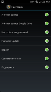 | Главное окно программы Qlync SatViewer Pro. Видны кнопки активации микрофона и встроенного динамика, который служит для обратной аудиосвязи. | Настройки программы, включающие параметры учетной записи для использования с Google Drive | Параметры качества передаваемого видеопотока | Просмотр событий: ролики, хранящиеся в Google Drive, обозначены специальной иконкой с соответствующим логотипом |
