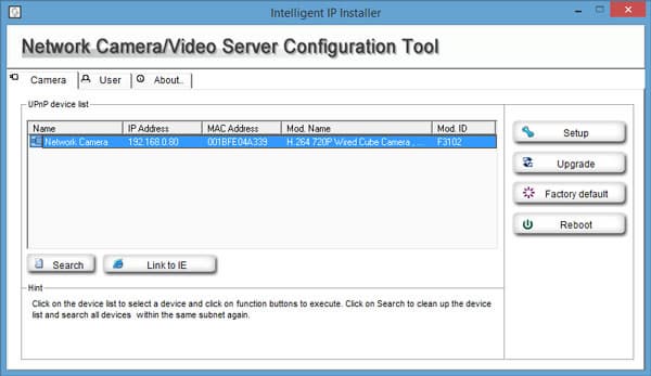 Тут можно пойти двумя путями. Первый — самый элементарный, удобный и понятный неподготовленному пользователю. Речь о прилагаемом компакт-диске с дистрибутивами программного обеспечения. Установив и запустив утилиту Intelligent IP Installer, пользователь увидит камеру, подключенную в локальную сеть. Теперь, когда камера найдена, имеется возможность приступить к основным ее настройкам — за это отвечает кнопка Setup, разумеется.