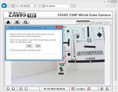 Но можно пойти и другим путем, более сложным, зато более продуктивным (если, конечно, уровень знаний позволяет). Набрав IP-адрес камеры в адресной строке браузера, мы попадаем в web-интерфейс аппарата. Интерфейс вполне стандартен: окно просмотра живого видео, требуемое количество управляющих элементов, вкладки и кнопки. В небольшом всплывающем окошке предлагается активировать облачный сервис Qlync Sat Viewer, который позволит вести наблюдение и просматривать записанные на локальный носитель видеоролики с другого ПК через интернет посредством браузера или с помощью мобильного устройства на базе iOS/Android.