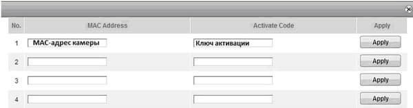 После короткой регистрации в сервисе либо входа при помощи учетной записи Google разрешается добавить к аккаунту одну или несклько IP-камер. Делается это на специальной страничке, где в служебных полях вводится MAC-адрес камеры и код активации (карточка с кодом входит в комплект поставки).