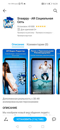 У App Gallery простой, понятный и наглядный интерфейс. Для каждого приложения есть подробное описание, категория, информация о занимаемом месте, скриншоты и отзывы пользователей.