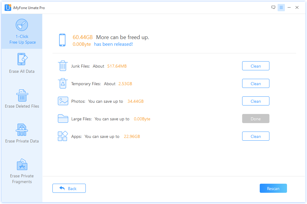 iMySoft Umate Pro работает без джейлбрейка iOS, поэтому удобство работы с приложением несколько снижено. Для того, чтобы тщательно «пропылесосить» память iOS-гаджета в посекторном режиме, программе без джейлбрейка приходится самостоятельно делать бэкап устройства на компьютер, производить с ним необходимые манипуляции, а затем загружать бэкап обратно на устройство. Иначе никак: ограничения Apple, безопасность, вот это все.