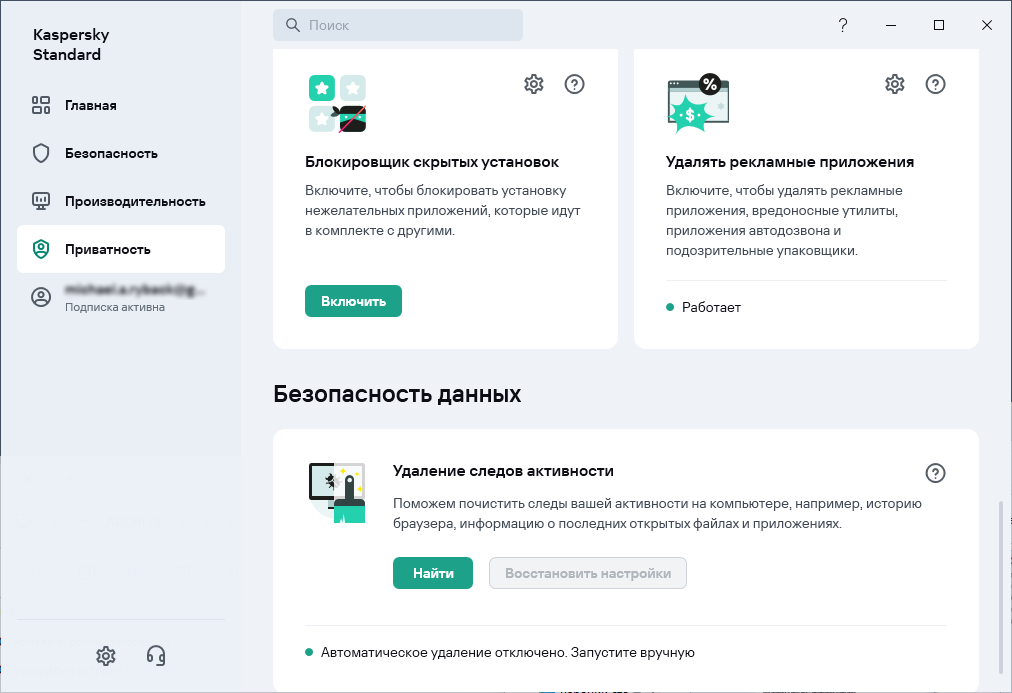 Функциональные ограничения в базовой версии (отсутствуют, например, VPN и защита веб-камеры).