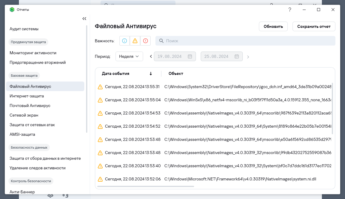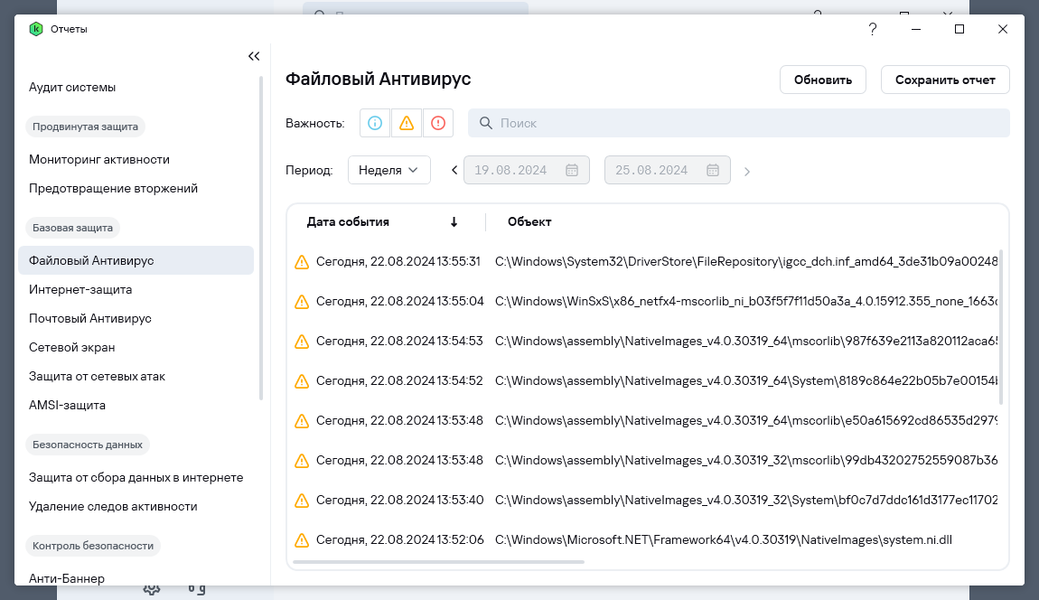 При сканировании приложение выявляет исполняемые файлы, фрагменты кода, параметрические указатели и динамические библиотеки, которые с ее точки зрения могут быть подозрительными на предмет киберугроз. В типичном случае это не означает, что Kaspersky Standard столкнулась с вредоносным кодом, но это могут быть слабости, уязвимости системы, при посредстве которых злоумышленники могут получить несанкционированный доступ к ПК.
