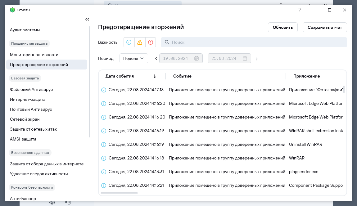 Kaspersky Standard самостоятельно обнаруживает те приложения, которым по мнению программы можно доверять, и переносит их в соответствующую группу.