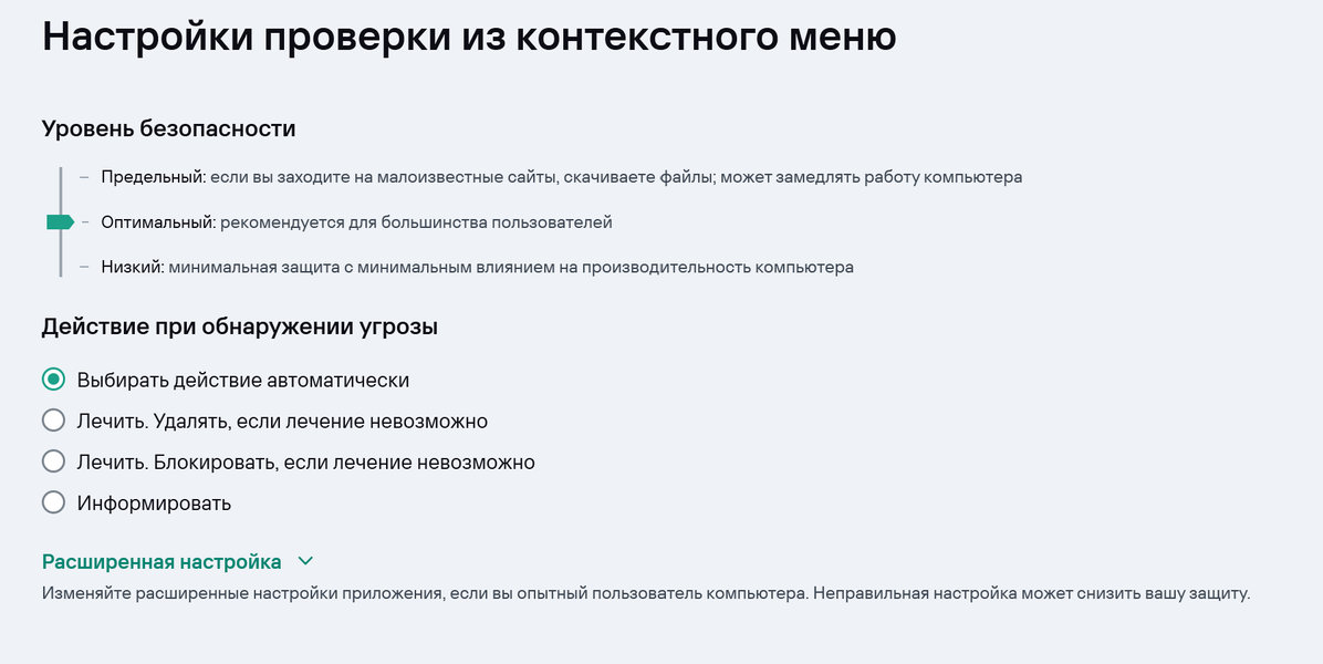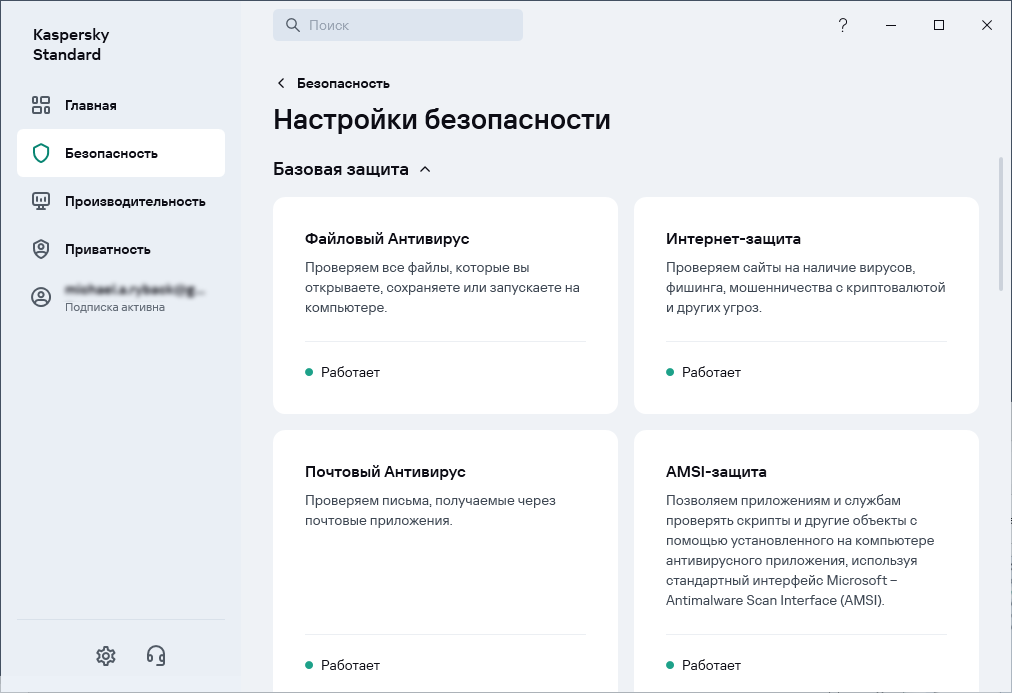 Функции Kaspersky Standard можно настроить для достижения оптимального уровня защиты и производительности компьютера. Вот некоторые из доступных настроек.