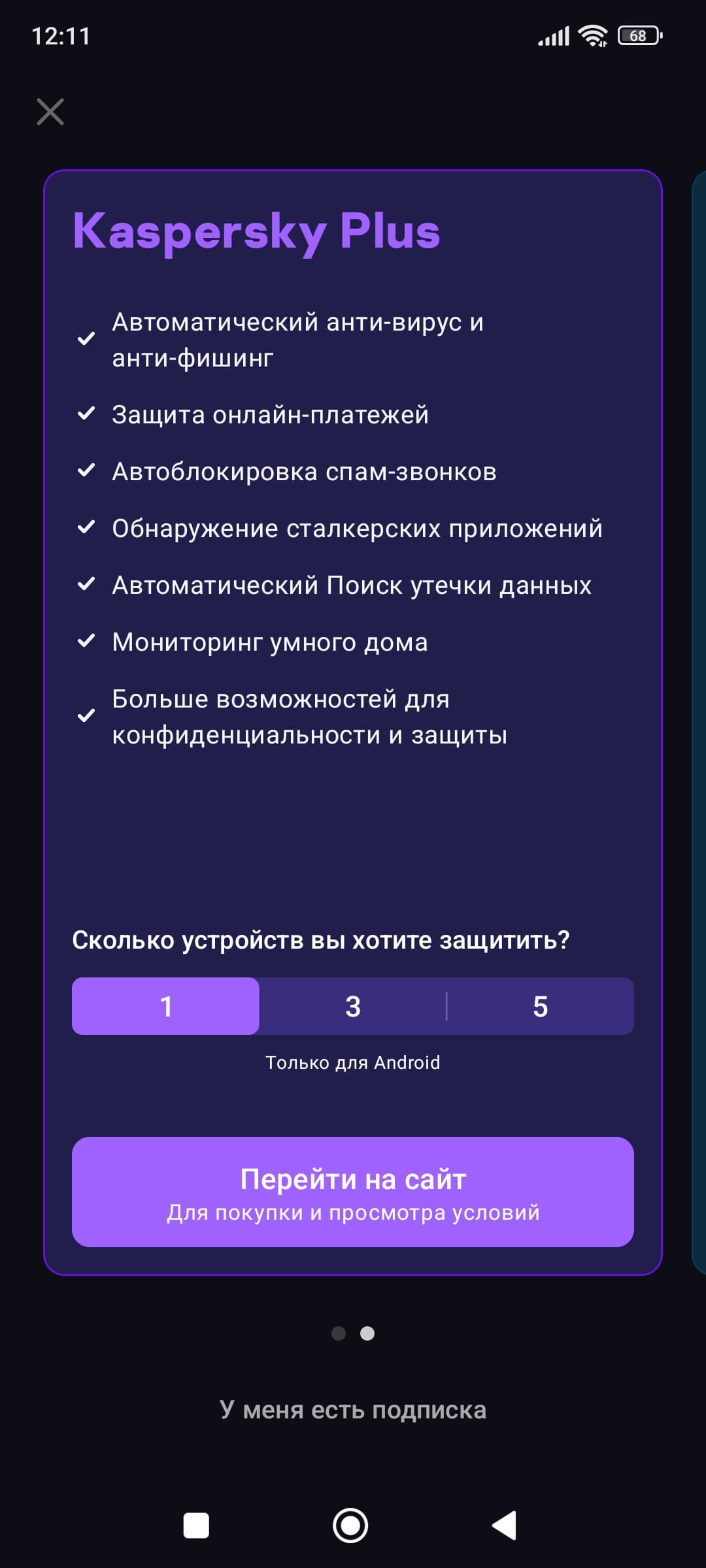 Высокая стоимость: подписка стоит существенно дороже, чем у конкурентов, особенно у версий, обеспечивающих защиту сразу нескольких устройств.