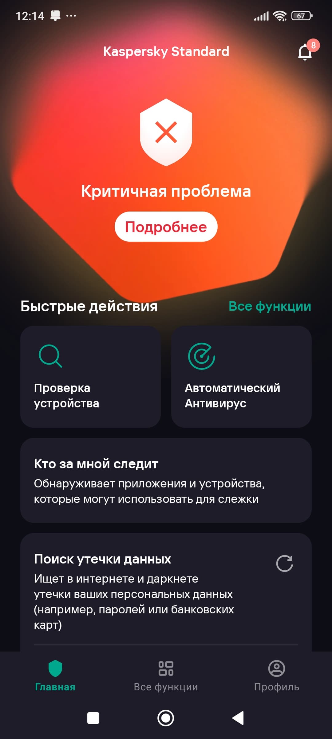 Kaspersky Standard для Android предлагает общие функции защиты от кибергугроз и специальные, предназначенные для мобильных устройств.