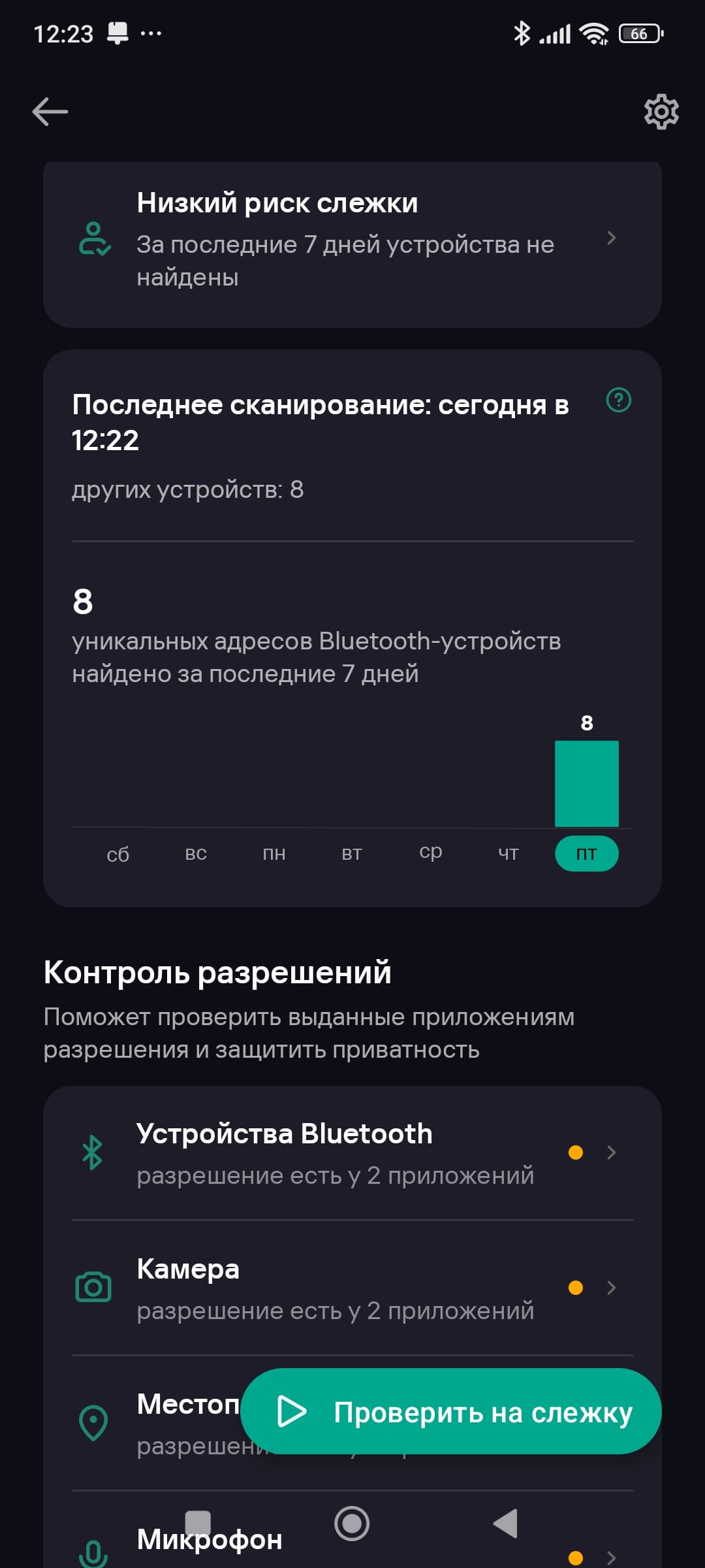 С некоторой долей вероятности Kaspersky позволяет выявить слежку за мобильным устройством. При активации Bluetooth приложение проверит, есть ли в истории несанкционированные подключения.