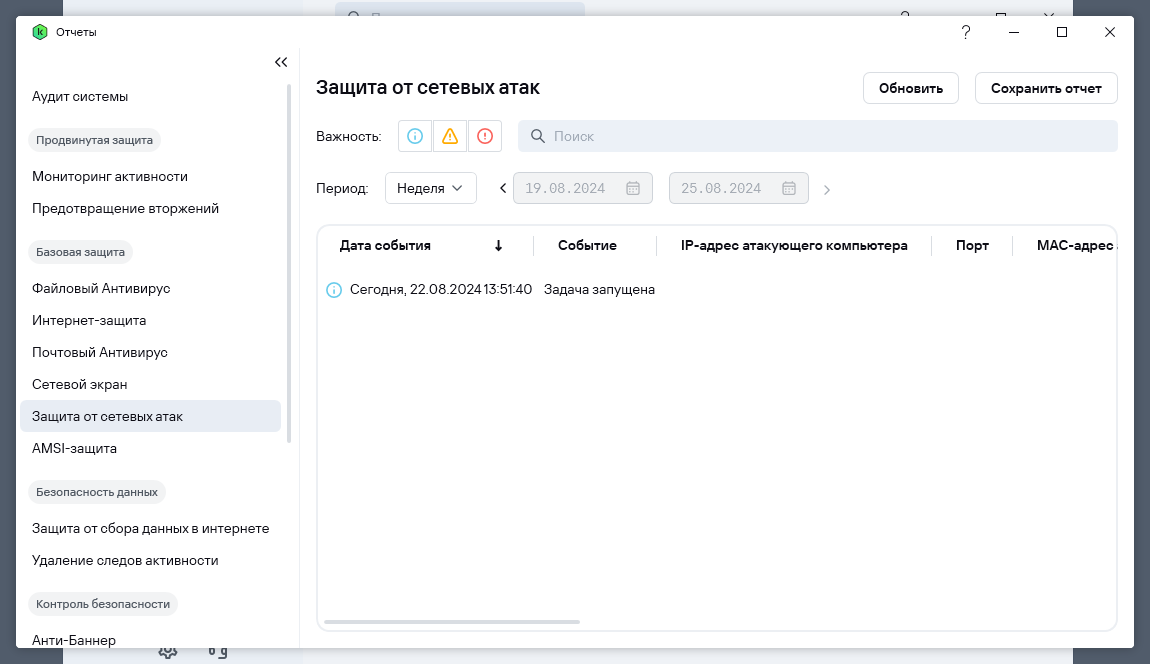 Касательно почтового антивируса, межсетевого экрана и защиты от сетевых атак есть подтверждения о том, что эти службы запущены.