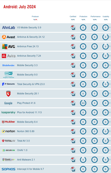 В аналогичном чарте антивирусного ПО для Android-устройств Kaspersky Standard также заработал наивысший балл по сумме троеборья.