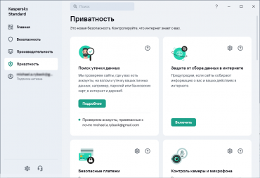 Антивирусный пакет Kaspersky Standard включает в себя множество функций для защиты вычислительной среды (компьютеров и сетей), повышения производительности системы и соблюдения конфиденциальности в отношении пользователя.