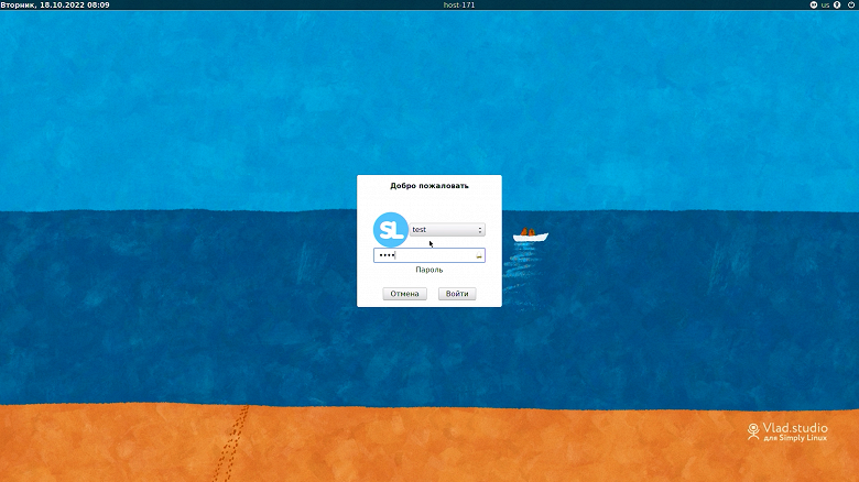 Первым делом Simply Linux запрашивает имя пользователя и пароль.