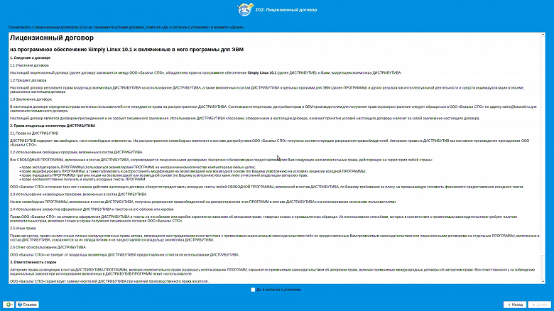 В процессе установки нам перечисляют преимущества Simply Linux.