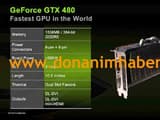 Слайд из презентации GeForce GTX 480 дает представление о внешнем виде 3D-карты