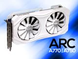 Непривычная синяя печатная плата и зачем-то два восьмиконтактных разъёма питания. Представлены видеокарты Sparkle Arc A750 и A770