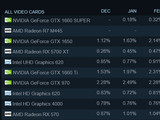 Встроенные GPU и видеокарты AMD становятся популярнее у геймеров
