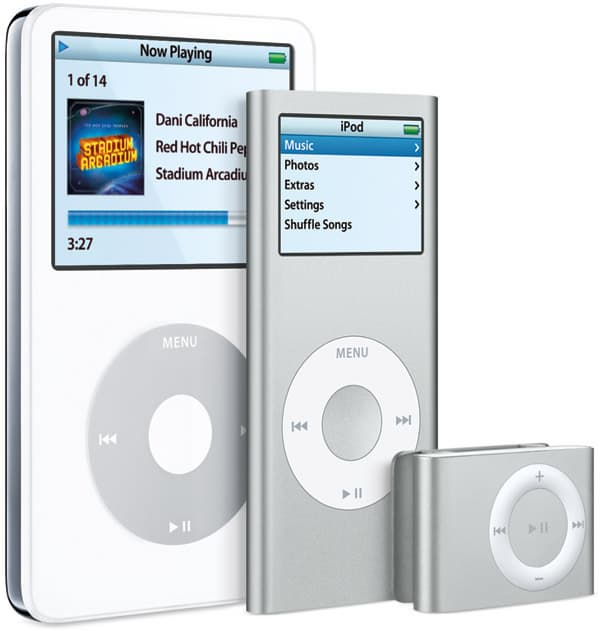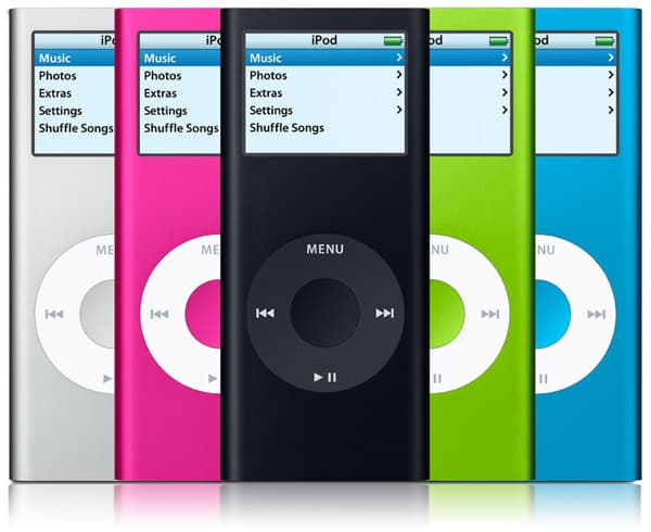 Самым большим изменениям подвергся сверхпопулярный iPod nano: он получил алюминиевый корпус, увеличенную на 40% яркость дисплея, увеличенный объем флэш-памяти, большее время автономной работы, стал на 3 мм тоньше и теперь выпускается в разных цветовых решениях (как iPod mini раньше). Что интересно: цветовая комбинация зависит от объема встроенной памяти. Двухгигабайтная модель выпускается только цвета «металлик», четырехгигабайтный iPod nano бывает синий, красный, зеленый и «металлик», а модель с 8 ГБ памяти доступна только в черном исполнении. Это понятно: Apple не выгодно выпускать модели с тремя вариантами памяти и пятью цветовыми комбинациями (что в сумме дает 15 вариантов вместо 6 сейчас). В то же время, если вспомнить MacBook и его топовую модель «в черном», наблюдается интересная тенденция — пользователи получают жесткую привязку цвета к характеристикам модели. И, вполне вероятно, что некоторые будут готовы заплатить дополнительные деньги за цвет (ведь в нем отражается уровень устройства).