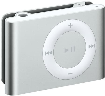 iPod Shuffle изменился кардинально. Теперь он представляет собой клипсу, размерами 4,12×2,7×1,04 см, которая весит всего 15,5 граммов. Объем встроенной флэш-памяти составляет 1 ГБ, дисплея, конечно, нет. Очень интересное решение, которое наверняка займет достойное место в своей нише (цена в США — 79 долларов). Ведь без таких изменений модель в последнее время была совершенно неконкурентоспособна: без экрана и с размером, сопоставимым с iPod nano, она вряд ли могла заинтересовать покупателей.