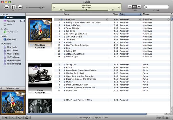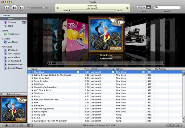 Значительно обновился также популярный плеер от Apple. Его дизайн стал несколько строже и выдержаннее предшественника, а также появился целый ряд нововведений. В первую очередь, привлекает внимание измененная левая (навигационная) панель. Теперь она разделена на четыре блока, которые призваны облегчить управление программой, это library, store, shared и playlists.