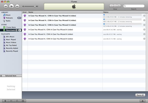 Значительно изменилось управление закачками. Если в предыдущей версии при скачивании, скажем, подкастов, вы могли видеть только характерные значки рядом с объектами, а в верхней панели отображался только ход скачивания, то теперь каждый отмеченный для скачивания объект попадает в пункт «Downloads», откуда вы можете управлять процессом. Вы можете продолжить скачивание с того момента, где остановились в прошлый раз, остановить и запустить все закачки нажатием одной кнопки. Как и прежде, одновременно вы можете скачивать три файла, остальные будут в очереди. Но теперь, даже во время закачки, вы можете продолжить обновлять RSS-потоки.