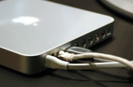 Сзади у нее находятся: разъем для подключения питания (адаптер встроен), порты USB 2.0 и Etherhnet (как альтернатива Wi-Fi), порт HDMI (он используется в современных телевизорах с поддержкой HDTV, по нему передаются и аудио и видеопотоки), композитные видеовыходы, аналоговое и цифровое аудио. На передней панели расположен ИК-датчик для пульта ДУ, такого же, как для Front Row (пока неясно, можно ли будет использовать один и тот же пульт для управления компьютером и приставкой).