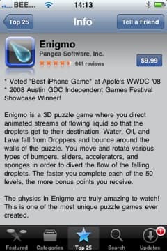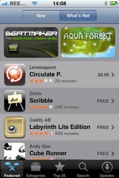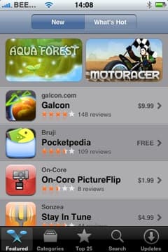 Кроме приобретения программ на компьютере через iTunes, вы можете приобрести их с вашего iPhone. Соответствующая программа App Store была добавлена в iPhone вместе с прошивкой 2.0. При приобретении и скачивании программ через iPhone, они сразу устанавливаются на телефон. Если программа имеет объем менее 10 МБ, то скачать вы ее можете любыми привычными способами — через GPRS/EDGE, Wi-Fi. Если программа имеет объем более 10 МБ, то нужно будет искать точку доступа Wi-Fi, так как по сетям сотовой связи она не скачается. Сделано это, конечно, для операторов сотовой связи, с которыми работает Apple — ведь они предлагают безлимитный доступ в интернет с iPhone, а скачивание больших приложений сильно бы увеличило нагрузку на их сети.