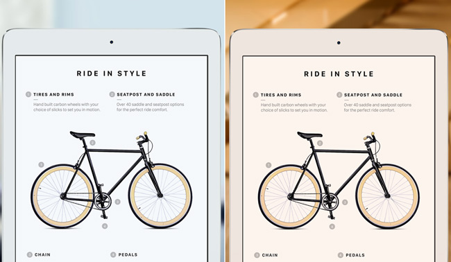 True Tone использует датчики для определения цветовой температуры окружающего света и в соответствии с полученными данными настраивает изображение на экране планшета так, чтобы оно выглядело более естественным. Например, при использовании ламп накаливания будет установлено более низкое значение цветовой температуры, при дневном свете — более высокое.