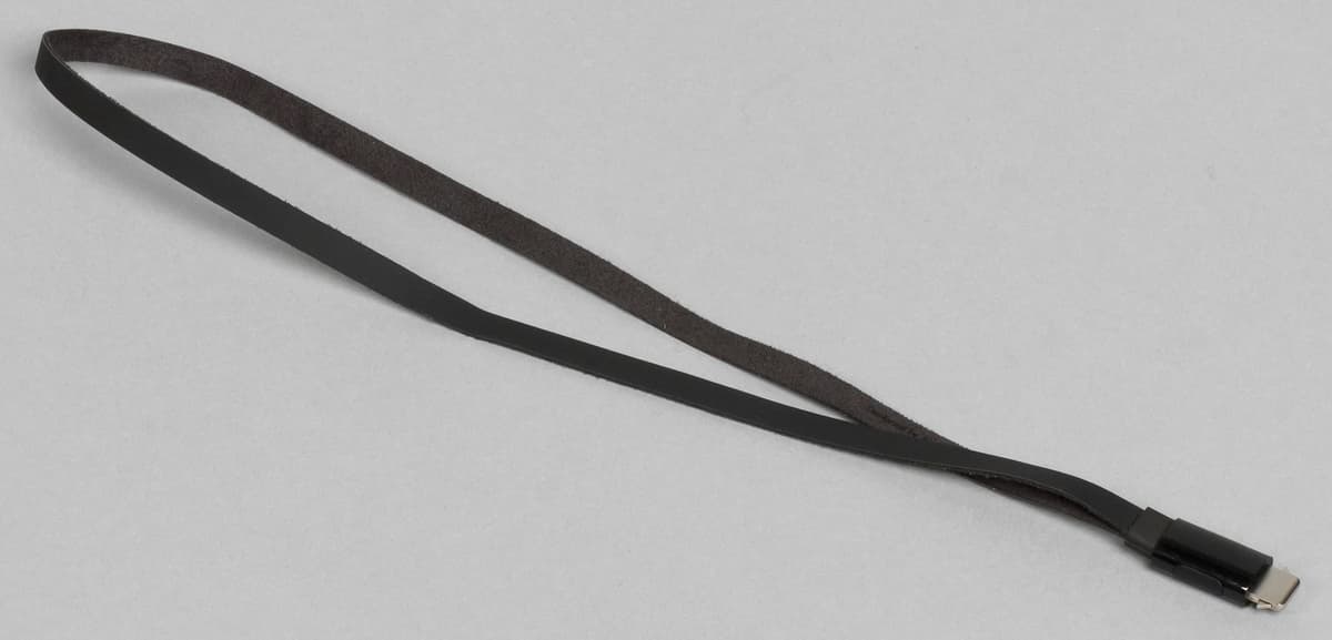 На верхнем торце пульта находится окошко ИК-передатчика, а с противоположной стороны — разъем Lighting для зарядки или фирменного ремешка. Последний представляет собой полоску из кожи с колечком. Закрепляется он в разъеме с использованием специальных защелок.