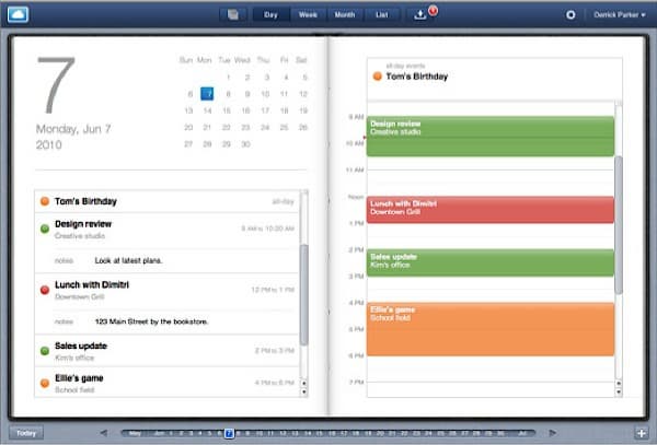 Как и в случае с Почтой, Календарь стал очень похож на своего мобильного собрата из iPad. В новом интерфейсе экран разделен на две части: слева — список запланированных дел, справа — почасовая сетка на день, в которую можно вписать новые встречи и дела. В связи с этим встает вопрос: ждать ли изменения интерфейса iCal и Mail в Mac OS X? Ответ на этот вопрос нам даст только Mac OS X 10.7. А пока — вернемся к MobileMe.