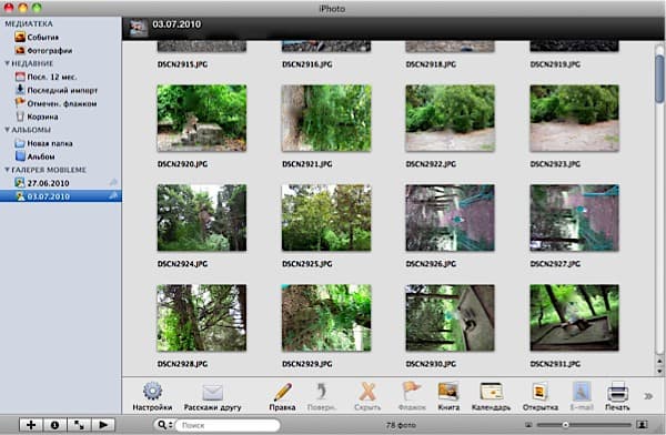 Сначала поговорим о сервисе в целом. Apple предоставила нам удобное хранилище для фотографий, причем, организовано оно по образу и подобию iPhoto (приложение из пакета iLife для Mac OS X), и с ним же тесно связано: любые фотографии из iPhoto можно одним кликом опубликовать в Gallery на MobileMe. Специально для этого в iPhoto есть в правом нижнем углу иконка с облачком. Но и это еще не все! Фотогалереи из MobileMe можно просматривать и редактировать прямо в iPhoto так же, как если бы это были собственные галереи iPhoto!