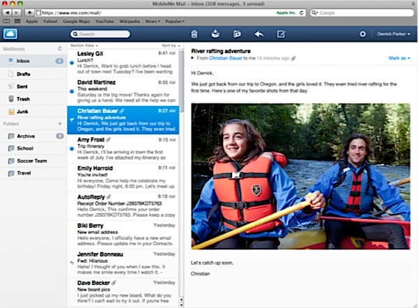 Список писем теперь располагается в узком вертикальном столбце. А текст выбранного письма — в большом окне справа. Полоса поиска в новом интерфейсе находится непосредственно над столбцом с письмами, а значок настроек — в правом верхнем углу. Кроме того, появилась папка Junk (спам). Значит ли появление отдельной папки, что спама стало больше? По заявлению Apple, спам-фильтр в новой версии MobileMe был улучшен. Впрочем, и до этого MobileMe был одним из лучших почтовых сервисов с точки зрения защиты от нежелательной почты. Теперь просто добавилось удобства.