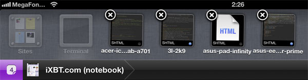 Отдельного внимания заслуживает виртуальная клавиатура, которая отличается от стандартной iPad-клавиатуры дополнительным верхним рядом клавиш. В зависимости от ситуации набор клавиш в ней может варьироваться. Вот, например, как выглядит эта клавиатура при HTML-верстке.