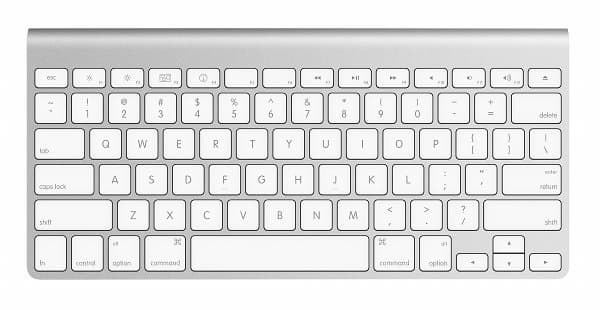 Не забудем и про периферию. Материалы традиционны — алюминий и белый пластик. Компактная беспроводная клавиатура удивляет своей простотой и удобством. Питается она от пары батареек формата AA. Как и многие клавиатуры на ноутбуках, ее верхний ряд имеет второй набор функций, в частности по управлению медиаплеером и вызову некоторых программ.