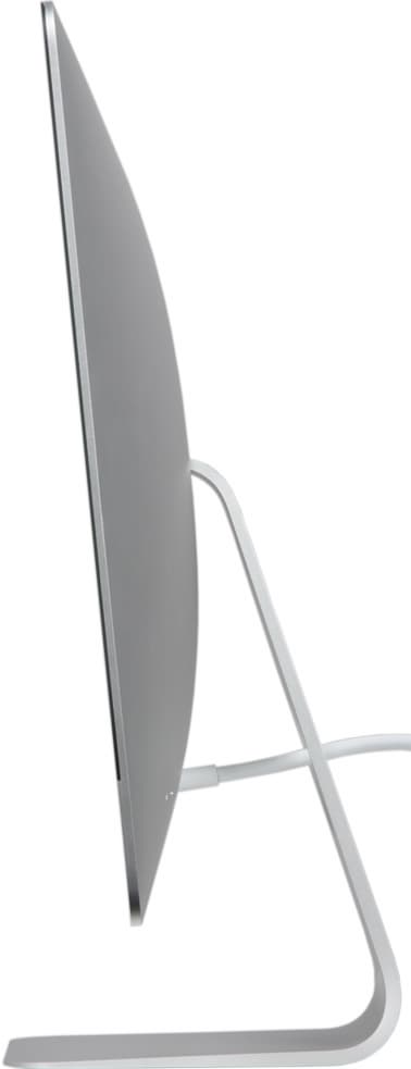 Главная особенность новинки – поразительный, неправдоподобно тонкий корпус. Когда видишь новый iMac, первая реакция: «такого не может быть!». Грани экрана (в едином корпусе с которым находятся и все комплектующие) имеют толщину всего 5 мм. Это меньше, чем у iPhone! Ближе к основанию и ножке корпус утолщается, но это утолщение очень плавное и не сильно больше, чем у предыдущих поколений iMac. В целом получается, что объем корпуса нового iMac примерно на 40% меньше, чем у его предшественника.