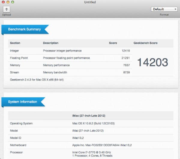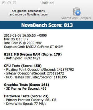 Мы запустили на обоих компьютерах два бенчмарка: Geekbench 2, тестирующий производительность CPU и оперативной памяти, и Novabench, тестирующий CPU, оперативную память, GPU и скорость накопителя.