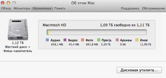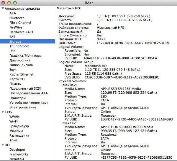 В iMac устанавливается винчестер на 1 ТБ или 3 ТБ (у нас был вариант с 1 ТБ), а также SSD емкостью 120 ГБ.