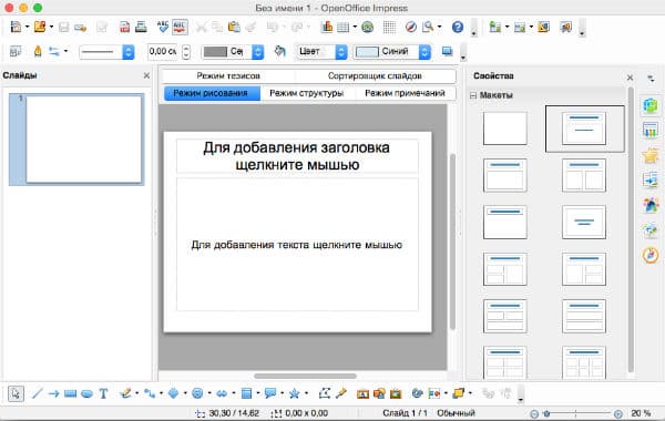 Второй момент — вопроизведение файлов .pptx, созданных в Microsoft PowerPoint. Здесь у Keynote ситуация не только не хуже, но даже лучше, чем у OpenOffice. Мы проверили ряд презентаций, включающих анимационные эффекты, различные шрифты и графические объекты — Keynote продемонстрировал отличный результат даже там, где OpenOffice сплоховал. Конечно, некоторые нюансы совместимости все-таки стоит отметить: например, могут немного отличаться шрифты (хотя в целом, по ощущениям, ситуация здесь лучше, чем у Pages) и отдельные анимационные эффекты. Но такого, чтобы в Keynote часть слайда вылезла за пределы экранного пространства, мы ни разу не заметили, в отличие от OpenOffice.